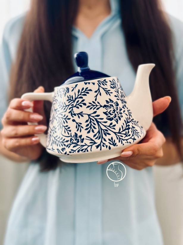 قوری دست ساز سرامیکی آبی لاجوردی پرطرفدار با طرح لیزا