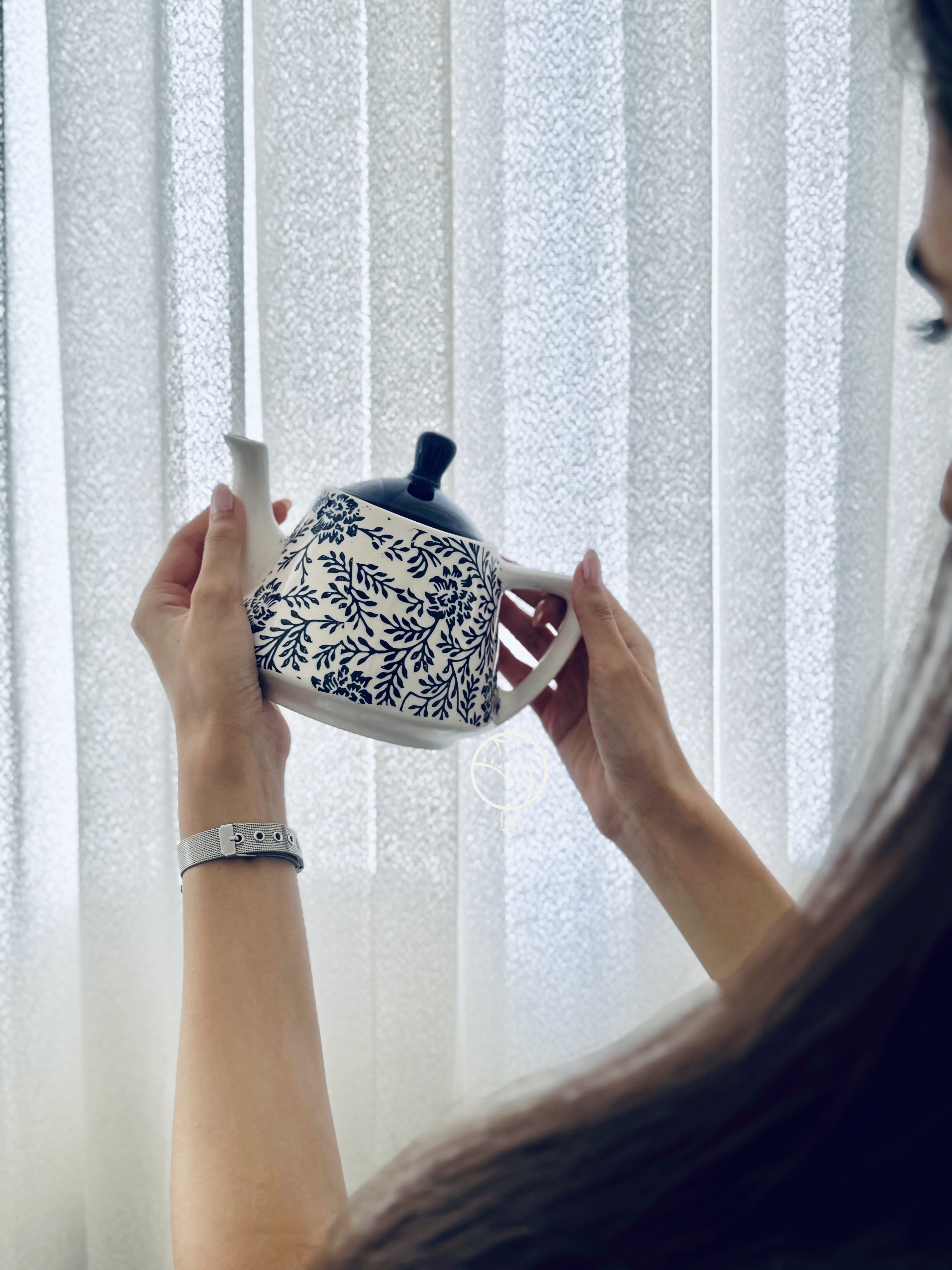 قوری دست ساز سرامیکی آبی لاجوردی پرطرفدار با طرح لیزا