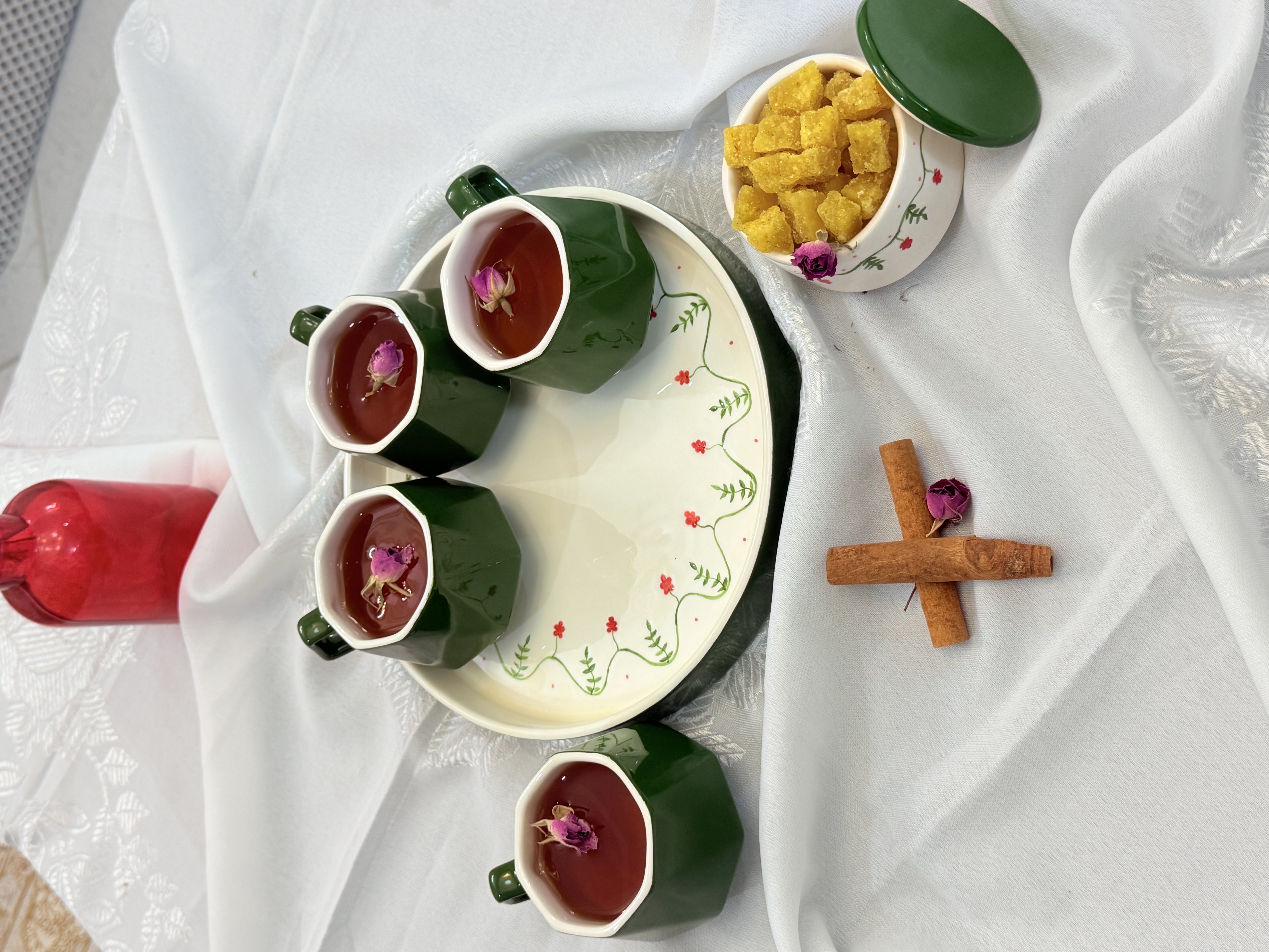ست چایی خوری ۴نفره دست ساز سرامیکی گل آویز مناسب یه عصرانه دلپذیر کنارخانواده