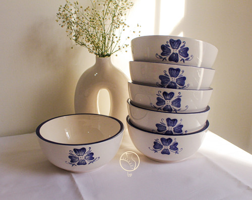 کاسه ابگوشت خوری دست ساز سرامیکی ۶ تایی گل آبی لاجوردی