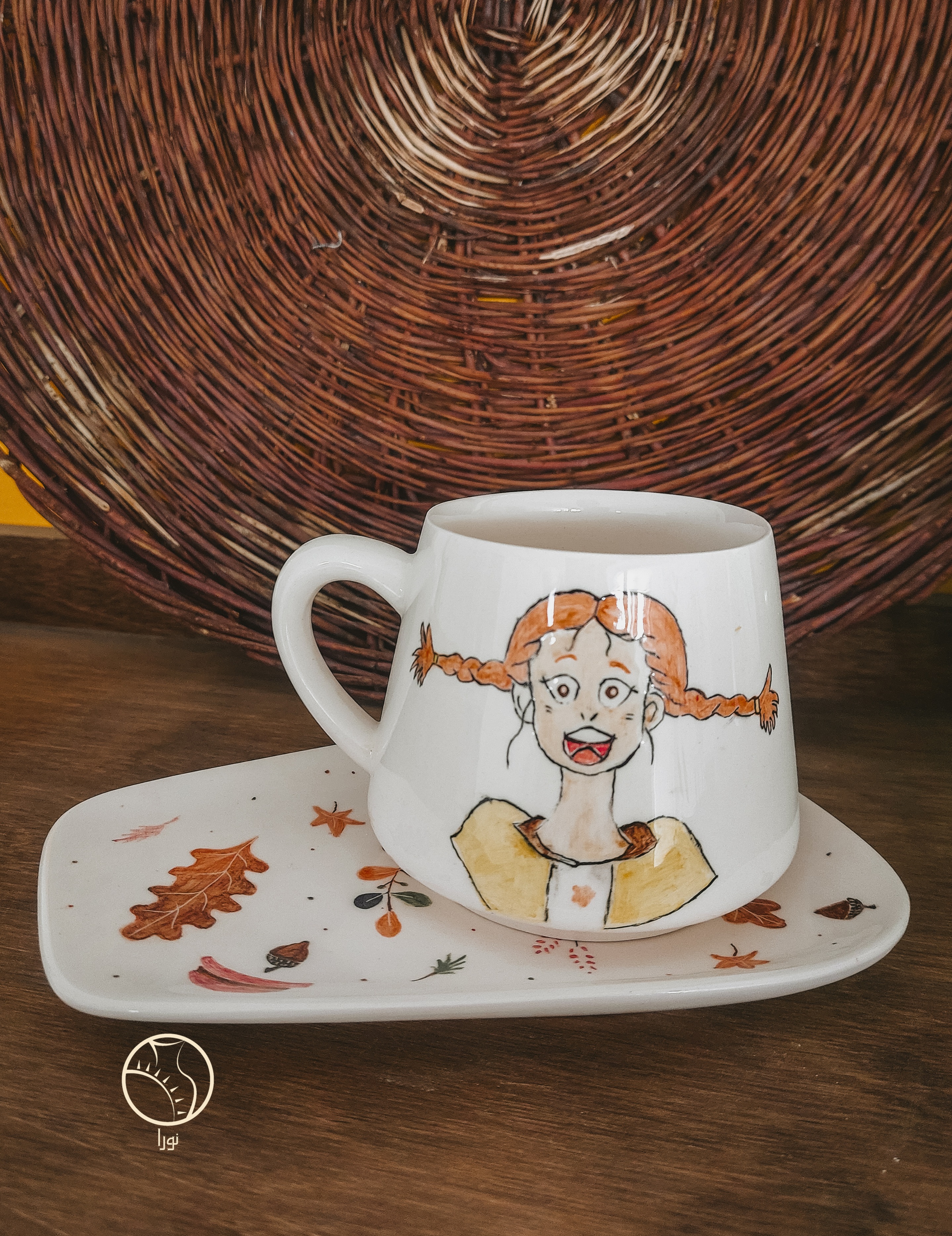 ماگ و زیر ماگی دست ساز سرامیکی دخترک فرفری مناسب برای هدیه و استفاده شخصی
