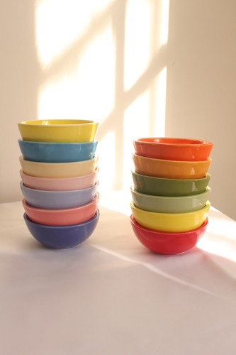 ست ۱۲ تایی کاسه ماست خوری دست ساز سرامیکی رنگی رنگی ، این کاسه ها سفره های شما رو رنگی و جذاب میکند حتی برای نبات یا قند و ..هم میتونید استفاده کنید