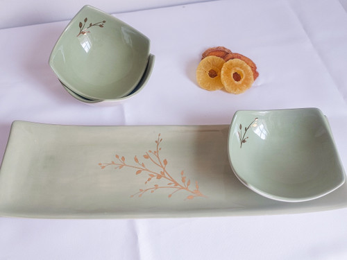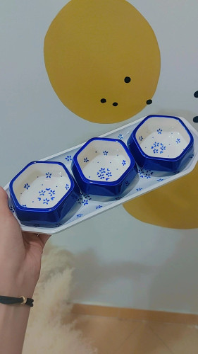 ست پذیرایی دست ساز سرامیکی گل آبی شامل میوه خوری،آجیل خوری،شکلات خوری