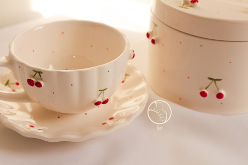 فنجون نعلبکی دست ساز سرامیکی دالبری با طرح گیلاس برجسته برای هدیه و استفاده روزانه گزینه بسیار مناسبی هست .