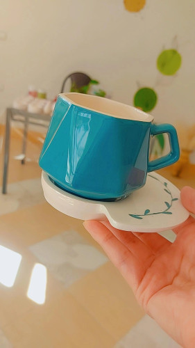 ست چایی خوره تک نفره دست ساز سرامیکی برگ پیچش، گزینه مناسب برای محیط کار و هدیه دادن🌸