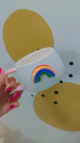 جرعهای عشق در هر بار نوشیدن… ماگ دستساز سرامیکی رنگین کمون، هدیهای بینظیر برای عزیزانتان و همراهی گرم برای لحظات دنج شما.☕💖