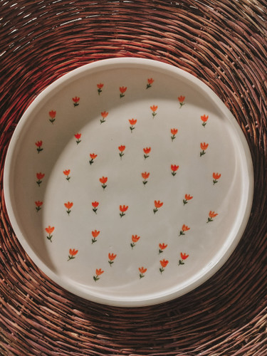 پیتزا خوری گل ریز دست ساز جنس سرامیک که مناسب برای تنقلات و یه کار پرطرفدار برای هدیه هست.