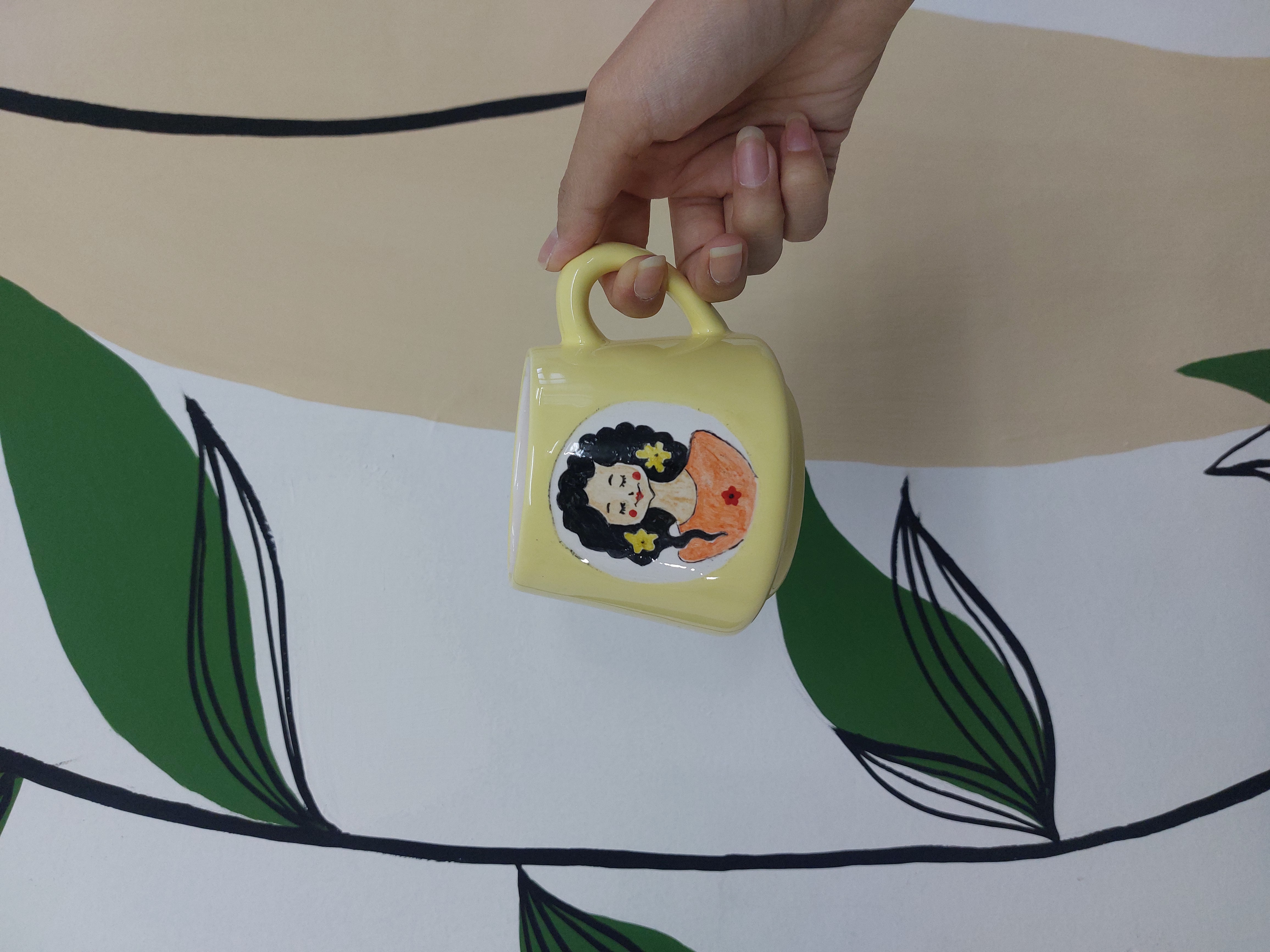ماگ دست ساز سرامیکی دخترک زرد که برای استفاده روزانه یا کادو دادن مناسبه.