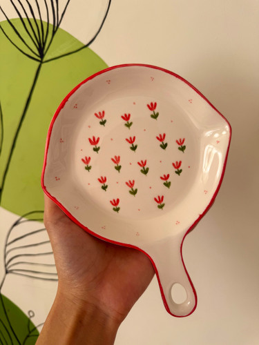 سینی مزه نقلی گل قرمز دست ساز سرامیکی مناسب هر نوع تنقلاتی،برای هدیه دادن هم گزینه مناسبی هست .