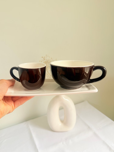 لته خوری و قهوه خوری دست ساز سرامیکی قهوه ای تیره همراه با زیری.