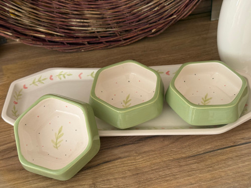 ست ۶ تایی ماست خوری و ۶ تایی خورشت خوری دست ساز سرامیکی کرم سبز