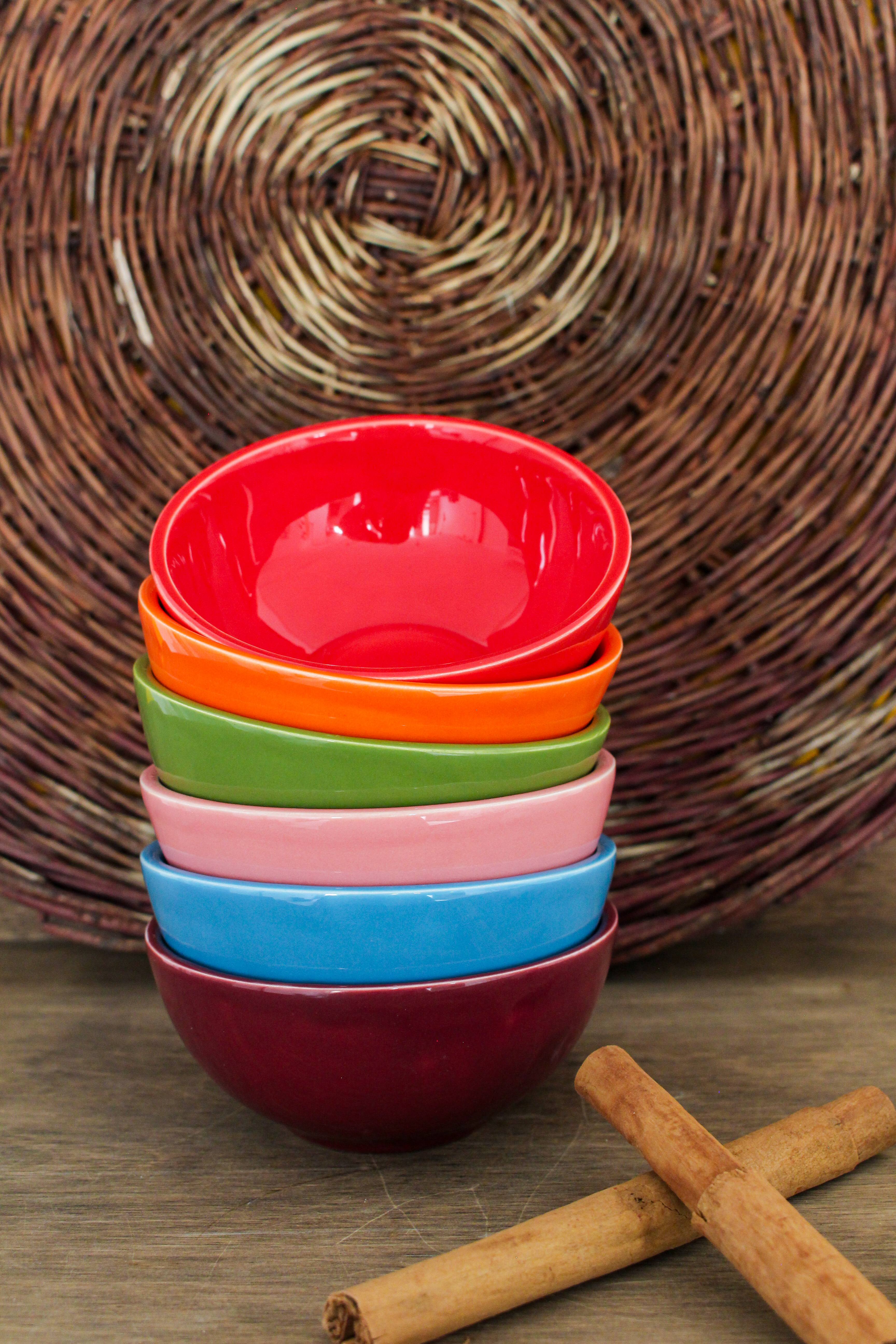 ست ۶ تایی کاسه دست ساز سرامیکی رنگی رنگی که مناسب برای صبحانه و قند و نبات..هست.